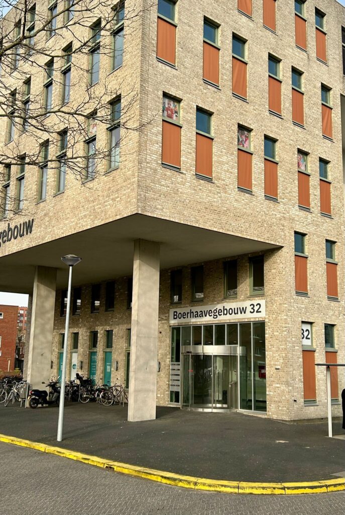Wij zitten op de begane grond. Je kunt plaatsnemen in de tweede wachtkamer aan je rechterhand.